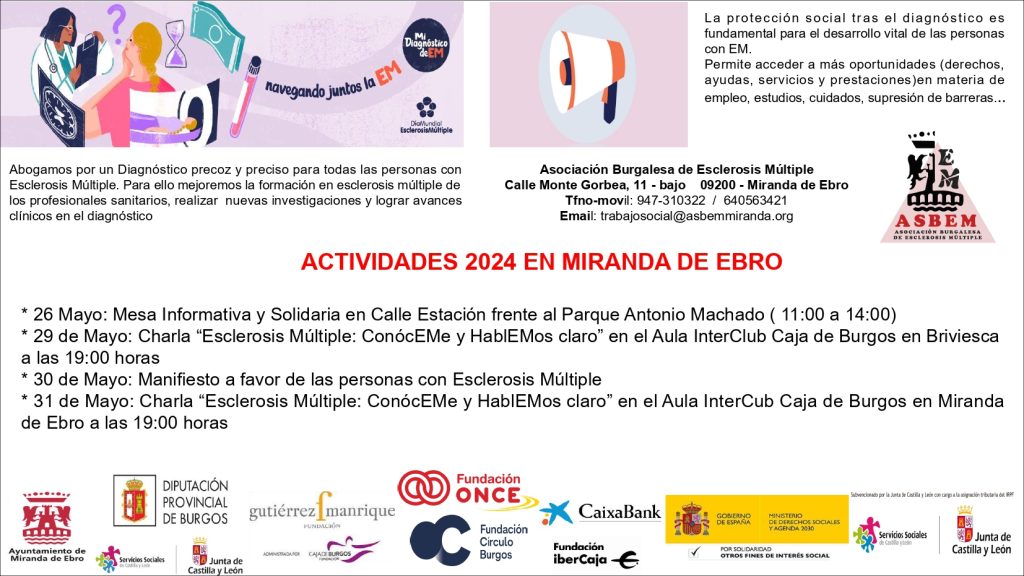 ASBEM COMMEMORA EL DIA MUNDIAL DE LA ESCLEROSIS MÚLTIPLE ( 30 DE MAYO) » DESDE EL PRIMER SÍNTOMA ,EL TIEMPO ES ORO»